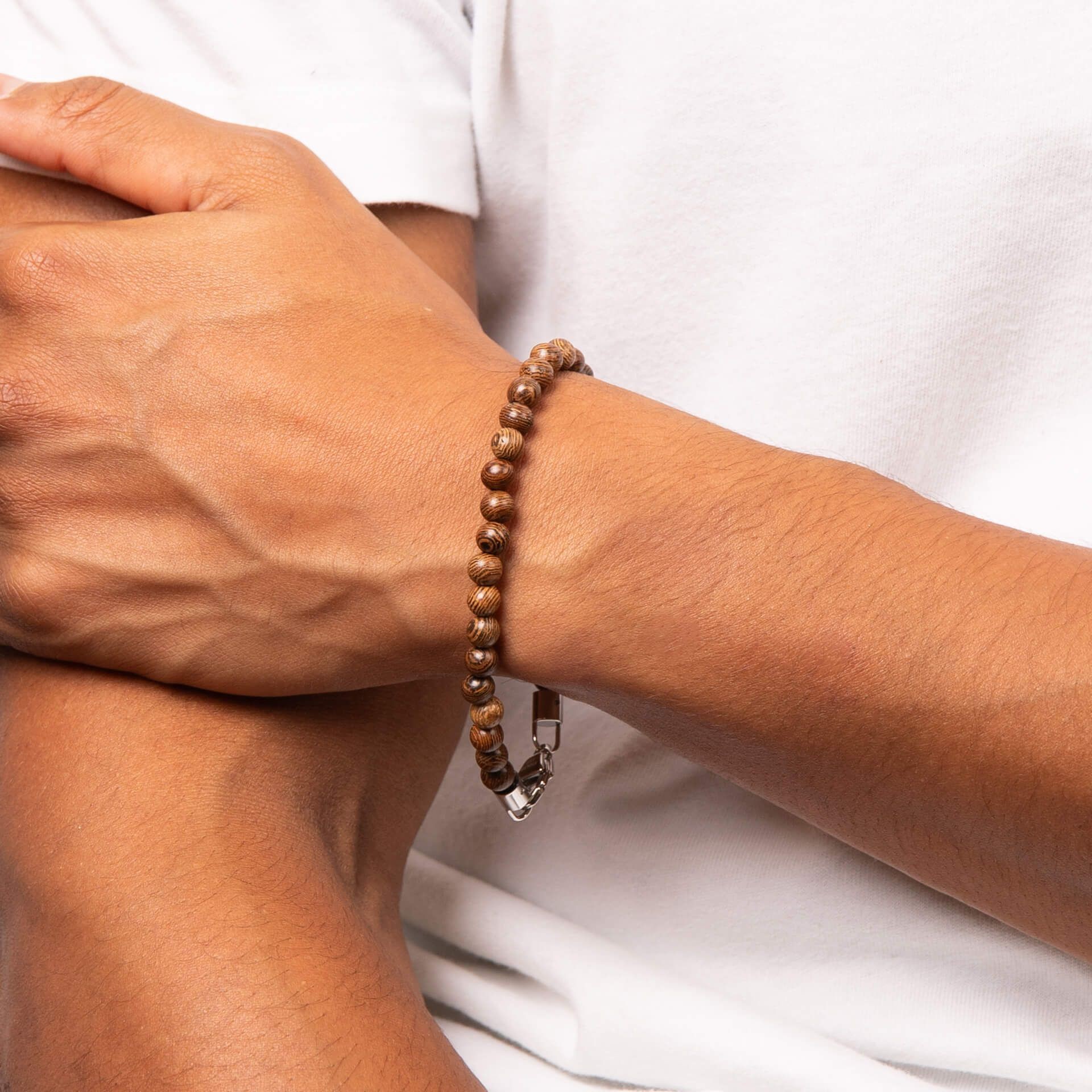 | Materiál | Chirurgická oceľ, naturálne hnedé drevené korálky |